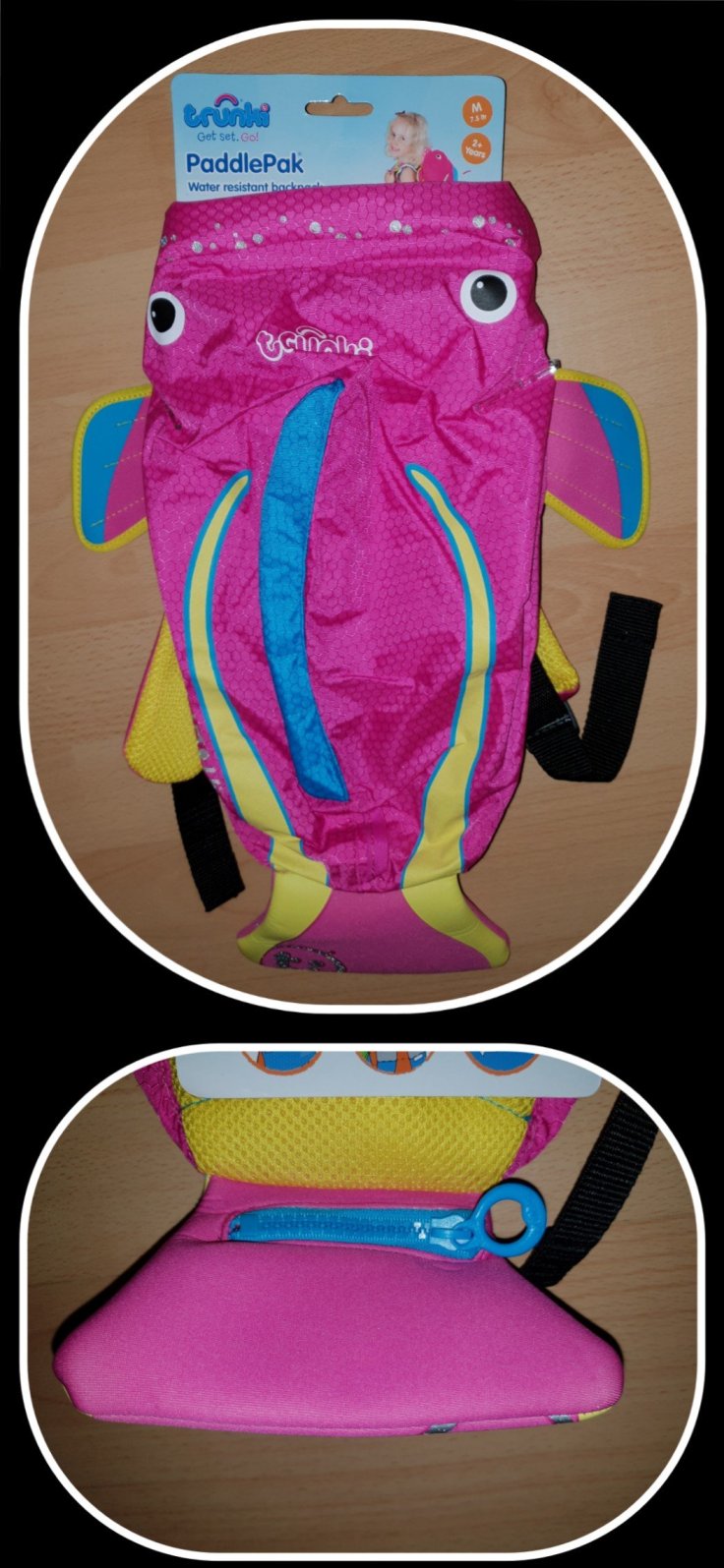 Badesachen wie ein Handtuch, Badeanzug oder Badehose und etwas zu trinken kann problemlos in den Paddlepack gepackt werden, im tollen Fischdesign mit einem kleinen Fach an der Flosse ist selbst etwas Geld perfekt gepackt und leicht auffindbar 👍😊