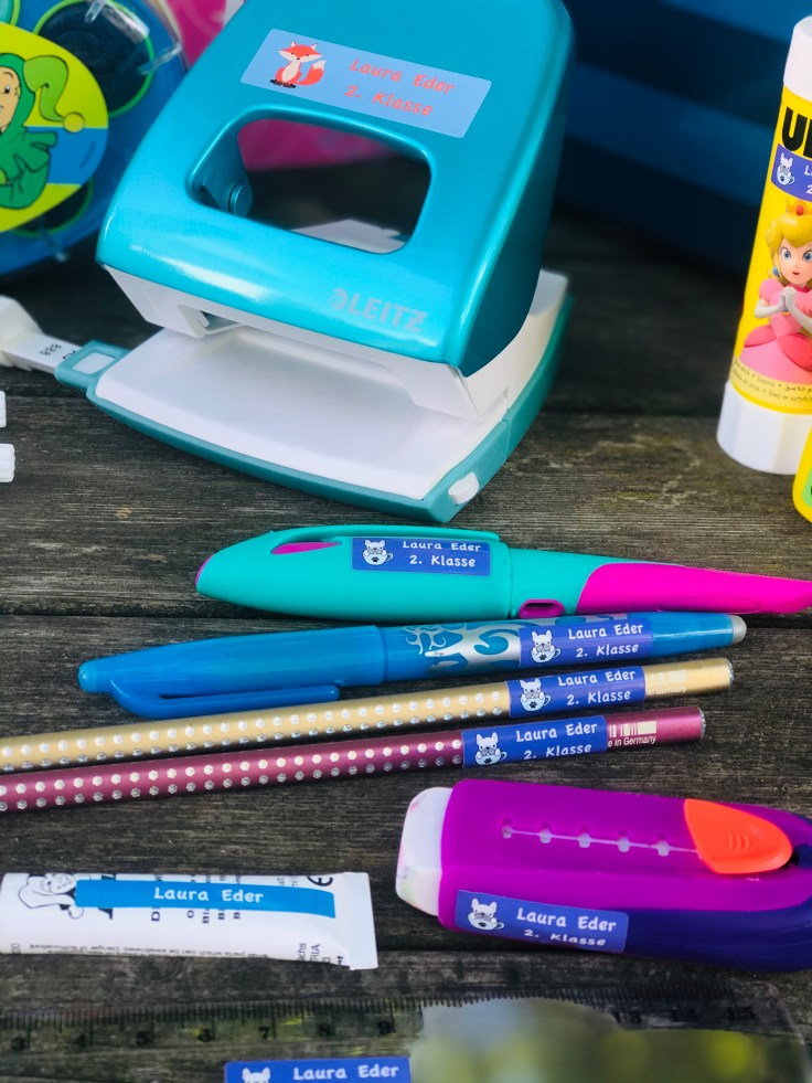 Als Mama von 2 Kindern, habe ich schon viele Dinge mehrmals neu gekauft, da sie auf seltsame Weise verschwunden sind. Damit genau das was ich vermute (nämlich, dass die Dinge einfach irgendwo liegen bleiben und dann den richtigen Besitzer nicht wiederfinden), im neuen Schuljahr nicht wieder passiert, werden alle Dinge mit den tollen Stickern von Stickerall gekennzeichnet.